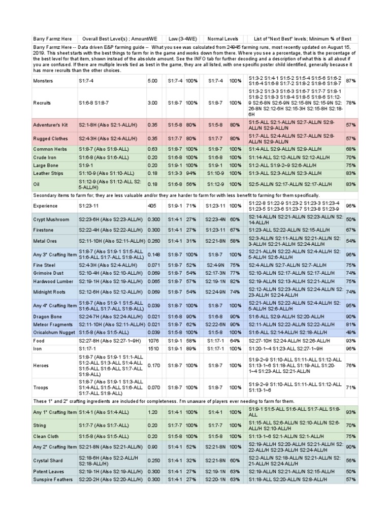 These two common resources are primarily used to construct and upgrade buildings in your … 1 (all) rugged cloth s2: Best levels to farm xp, iron and food, again you'll find the explanation below. Opening a purple chest not the greatest, but also not bad. Mar 03, 2020 · best levels to farm for crafting items.